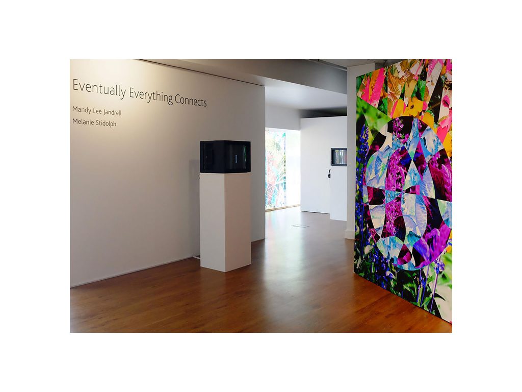 Eventually Everything Connects was a two‑person installation by artists Melanie Stidolph and Mandy Lee Jandrell, presented at Southampton Solent University’s city‑centre gallery from 18 May to 20 June 2015. The exhibition brought together previously unseen moving‑image works by Stidolph and a series of collage‑based installations by Jandrell, forming a closely connected and deeply dialogic body of work.