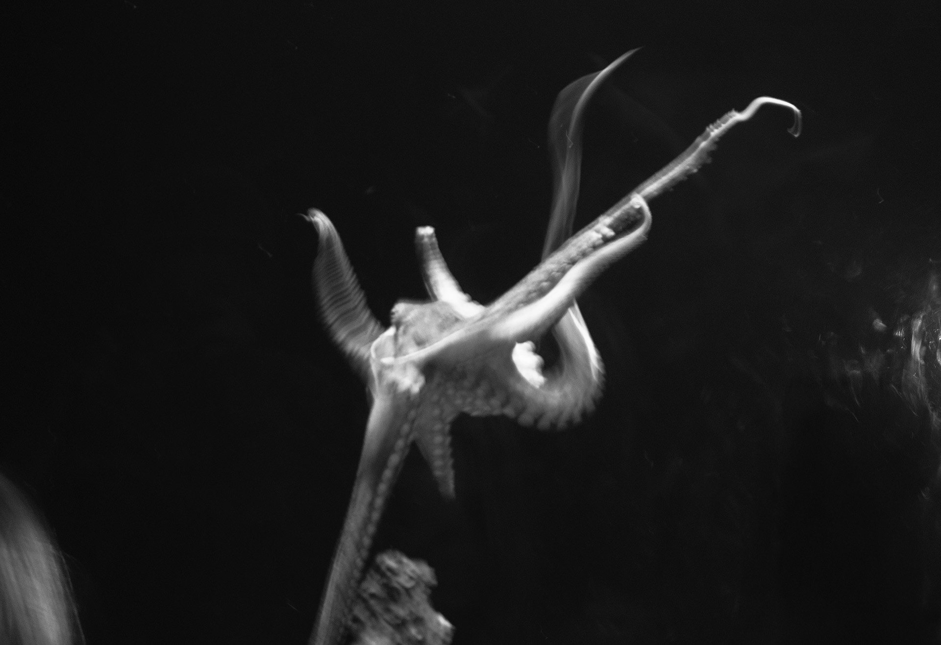 The photographs hover between abstraction and representation, often dissolving into softness or slipping out of focus. This threshold—where an image is almost recognisable yet somehow elusive—is central to the series. Jandrell’s subjects vary widely, from natural forms and nocturnal landscapes to underwater creatures and intimate portraits, yet what unites them is not their content but their sensibility: the shared quality of movement, strangeness, and atmospheric fragility that arises in the instant the camera freezes what the eye rarely registers.